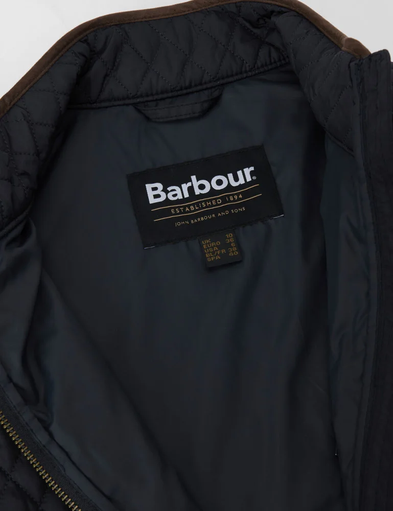 Ideal for those slightly cooler days, the Barbour Women's Basswood Gilet is an excellent layering option, boasting a diamond quilt design with fleece backing, a stepped hem, and studded lower patch pockets.