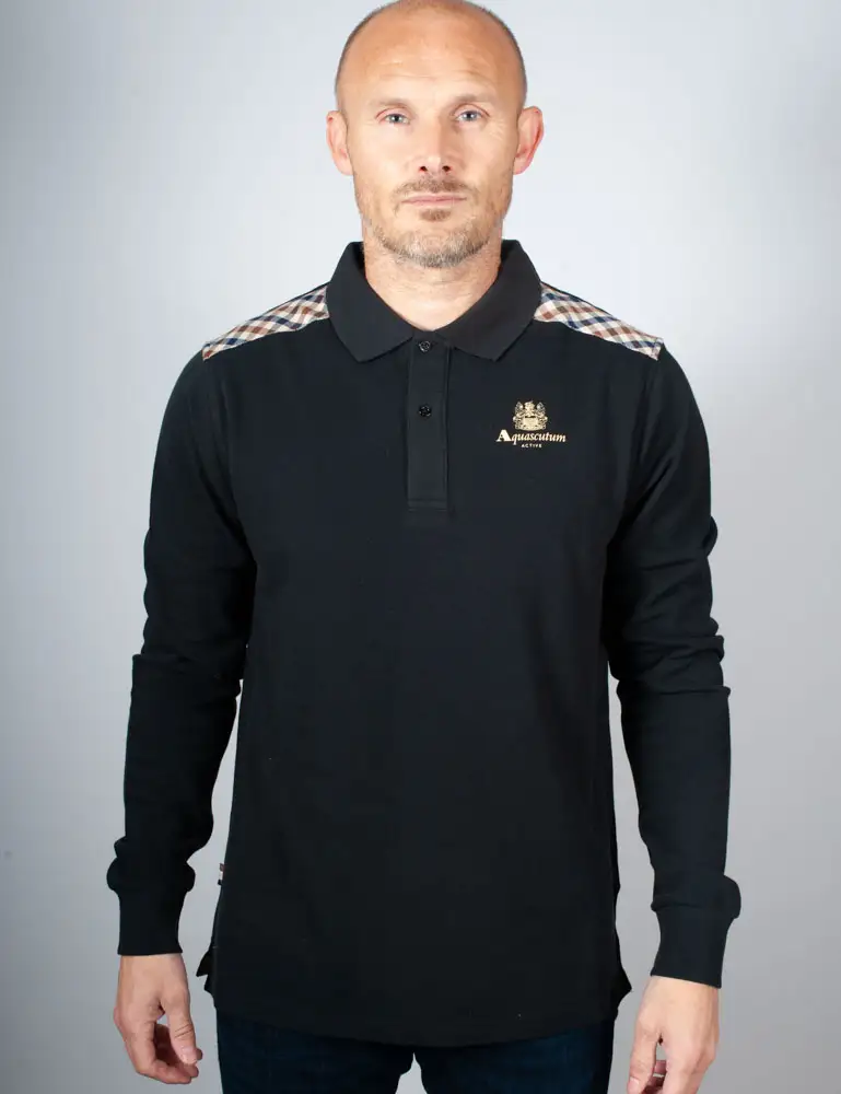 Aquascutum Active Check Shoulder Stripes L/S Polo / Black