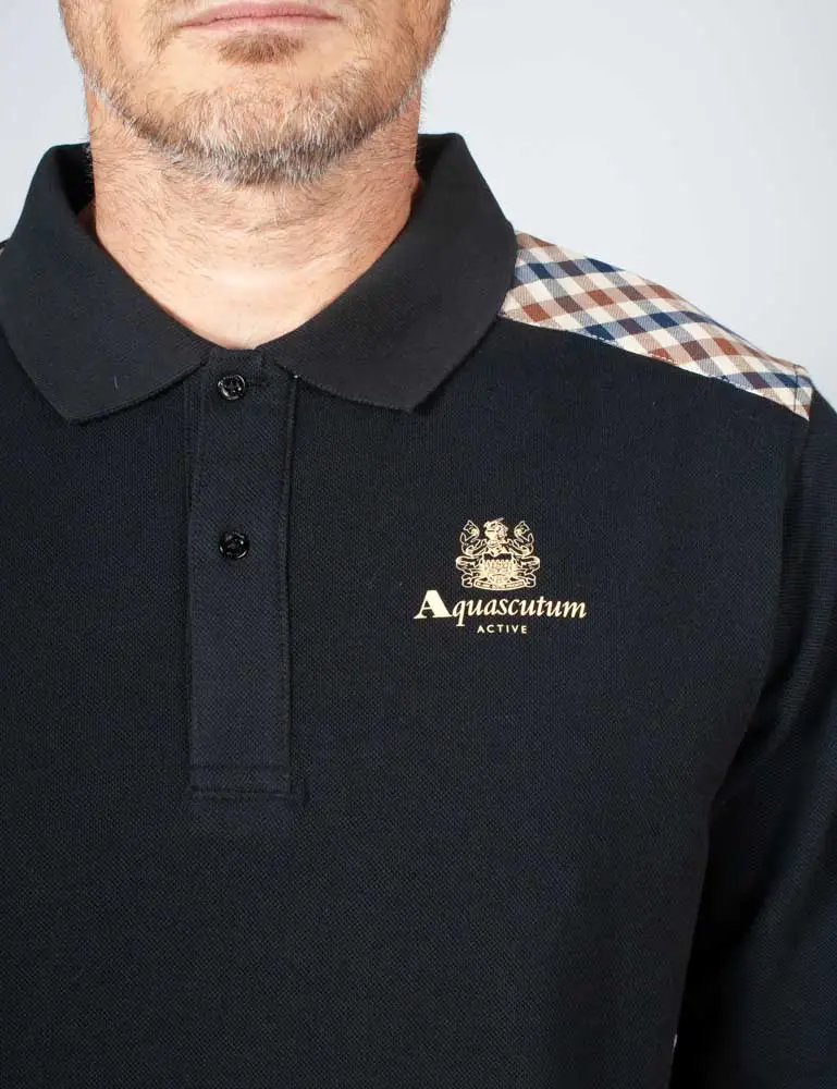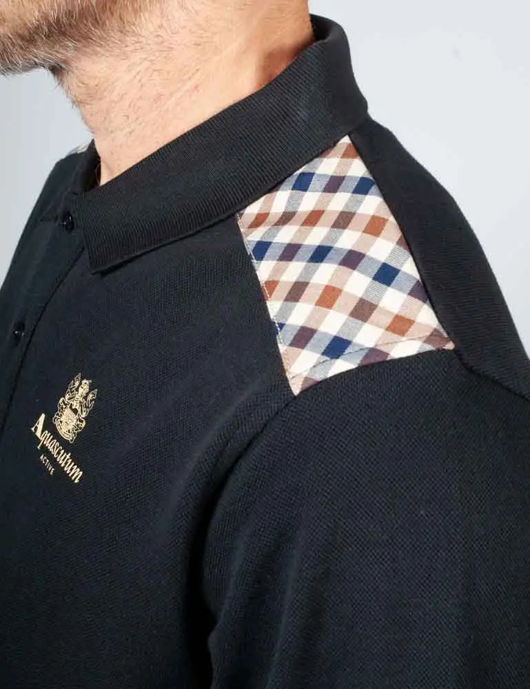 Aquascutum Active Club Check Shoulder Polo Shirt | Black