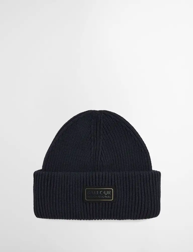 A winter staple from Barbour International's collection of accessories. The Craywell Beanie is carefully crafted in a chunky rib knitted cotton with a turn back edge adorned with the International lozenge badge.