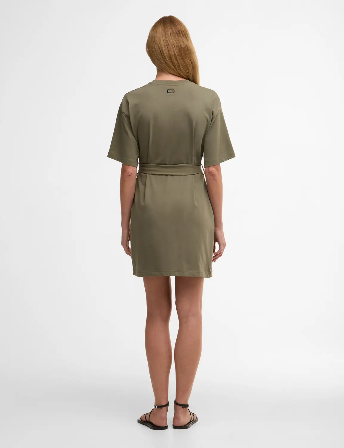 The Barbour International Uma Mini Dress, a casual cotton dress styled in a relaxed fit. This t-shirt mini dress has a classic crew neck and a self fabric belt and a Barbour Intl branded buckle for a more flattering silhouette.