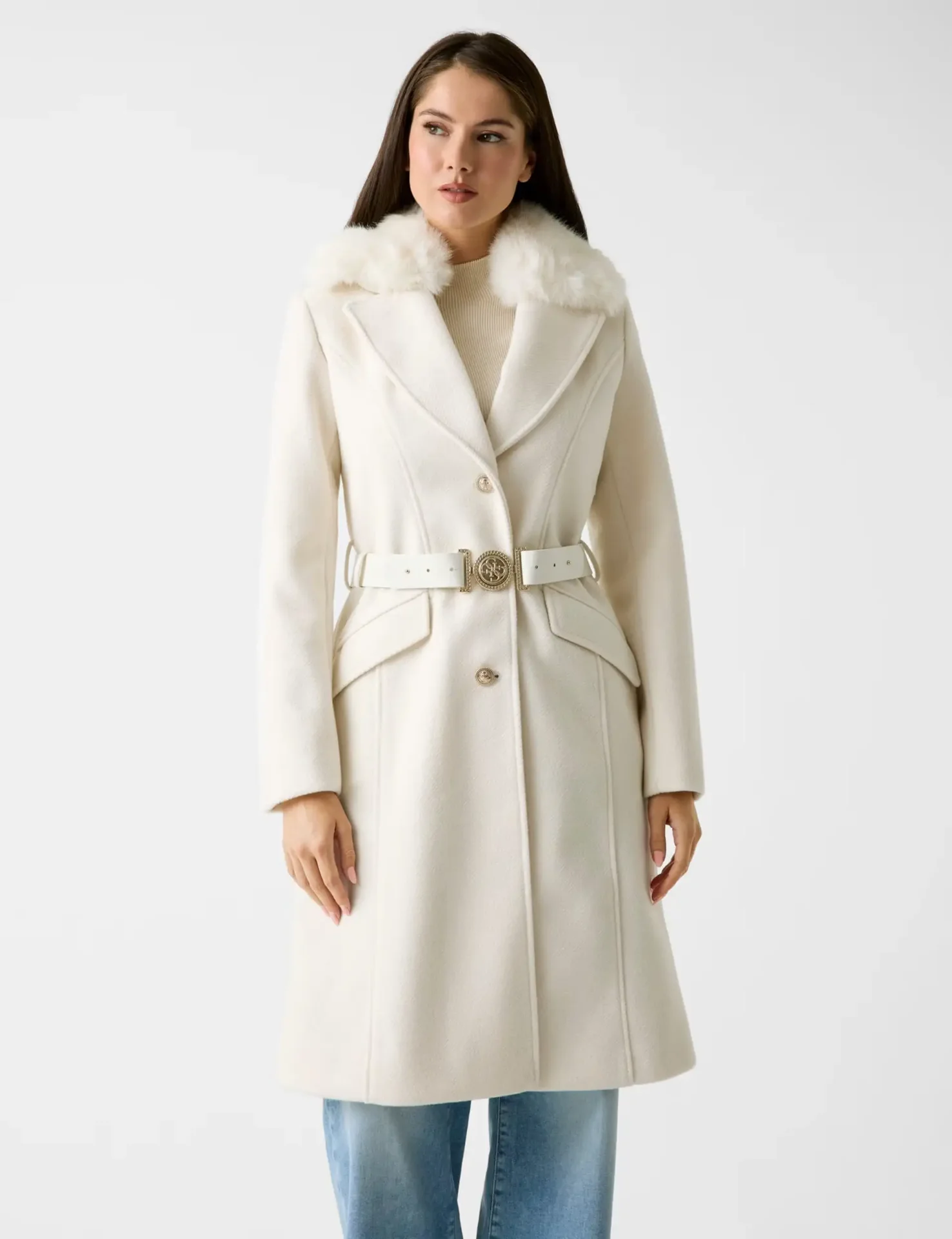 Guess Patrice Wool-blend belted coat | White