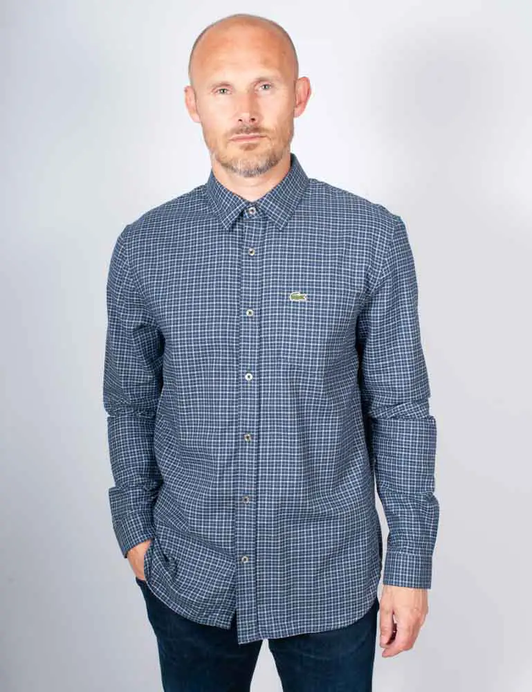 Lacoste Regular Fit Plaid Flannel Shirt | Navy Blue/White