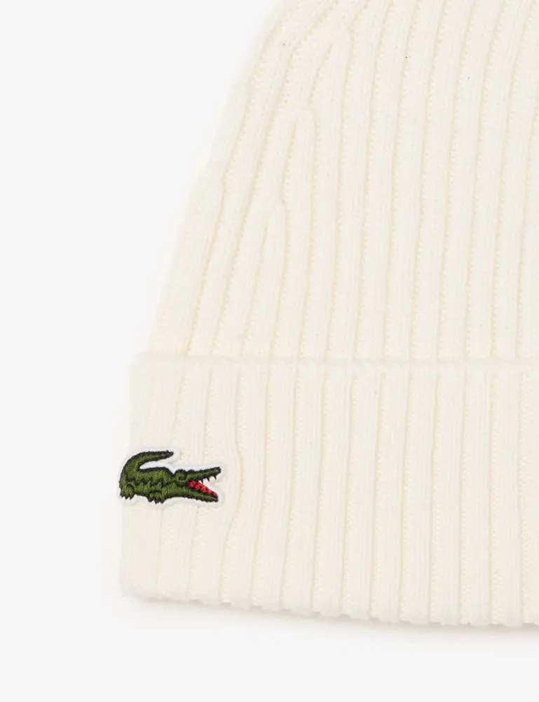 Lacoste Rib Knit Wool Beanie | Winter White