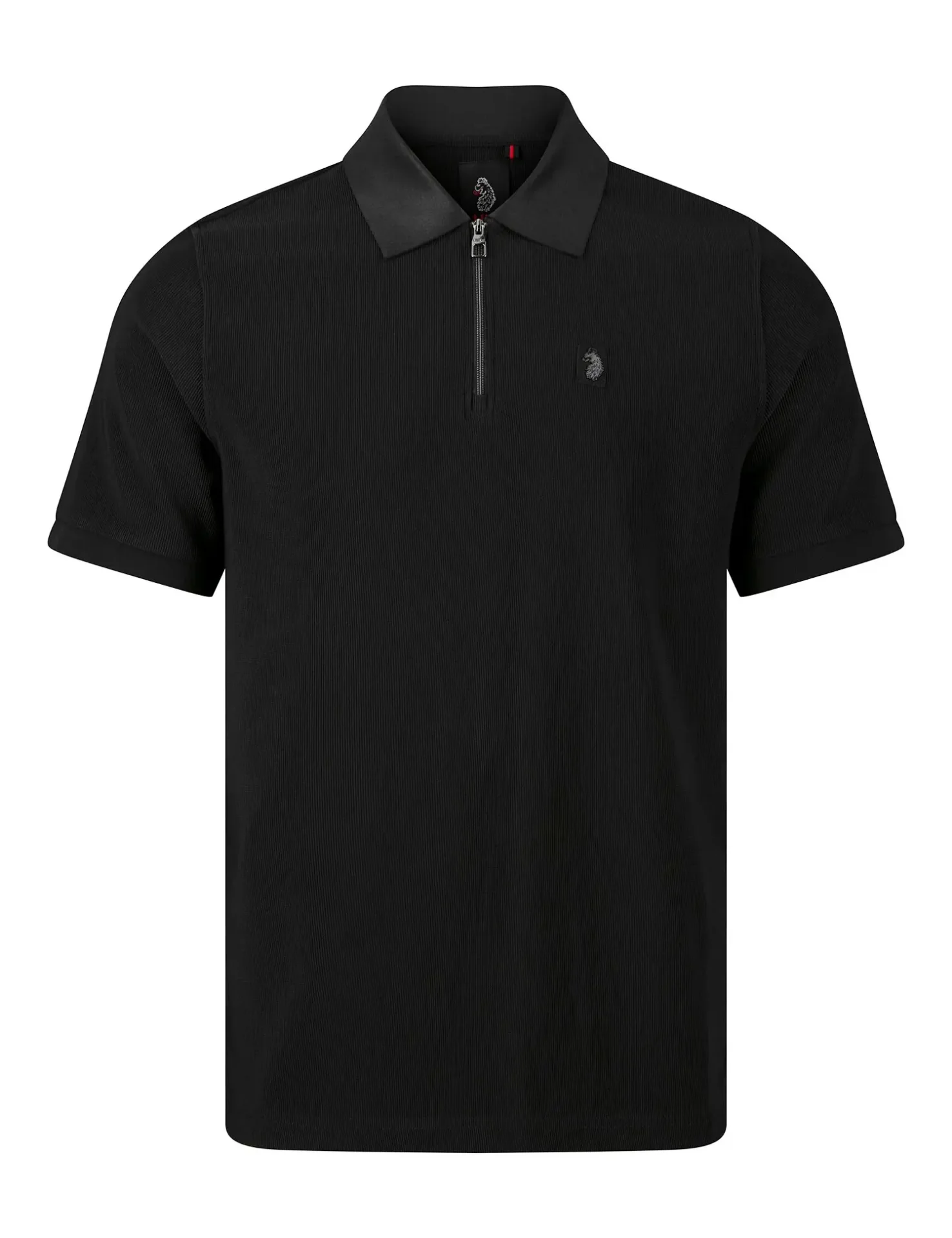 Luke 1977 Penrith Zip Neck Short Sleeve Polo Shirt | Black