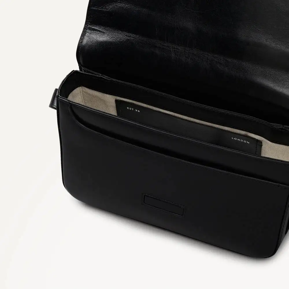Pocket Street, An ageless saddle bag crafted in heritage veneer smooth leather. This small flapover Cross-body bag is the perfect size for everyday use and features an asymmetric curved flap characterised by the original Pocket bag.