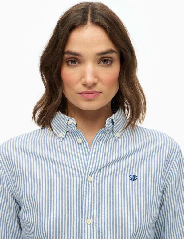 Superdry Slim Oxford Button Down Long Sleeve Shirt | Broker Blue Stripe