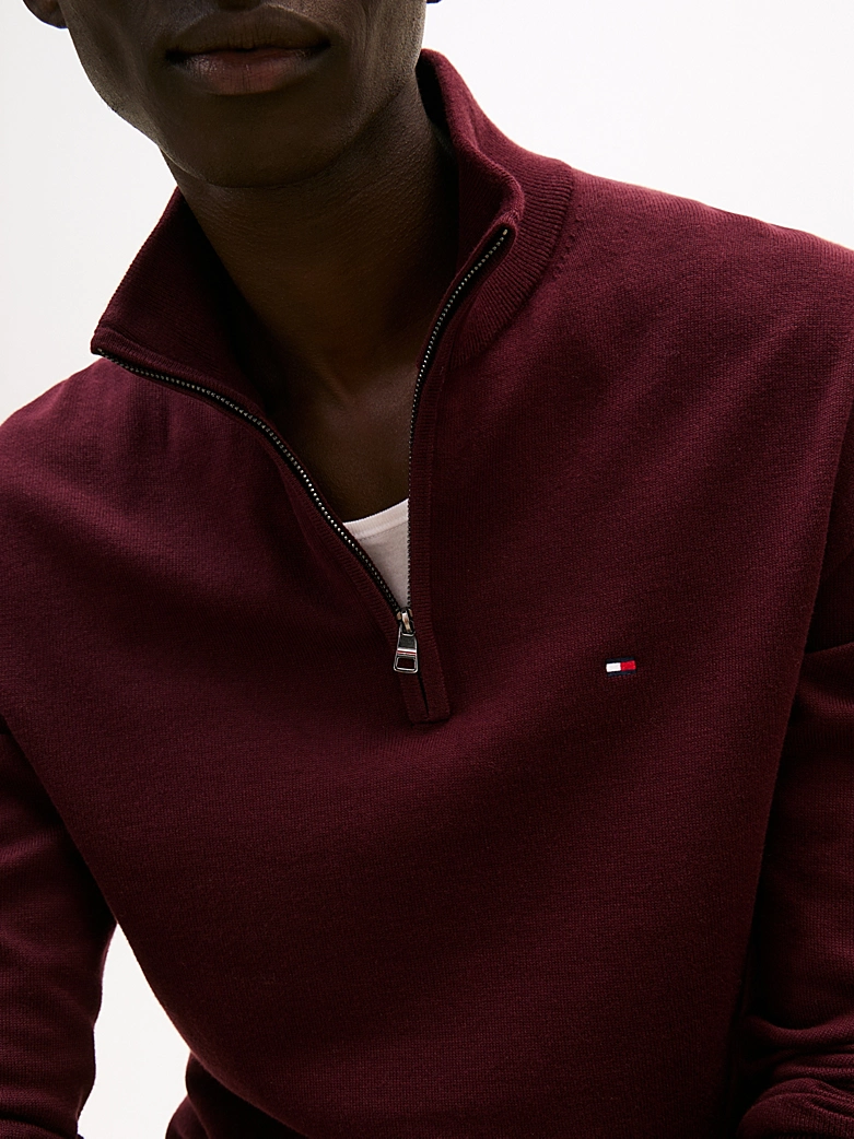 Tommy Hilfiger Essential Cotton Zip Mock | Burgundy