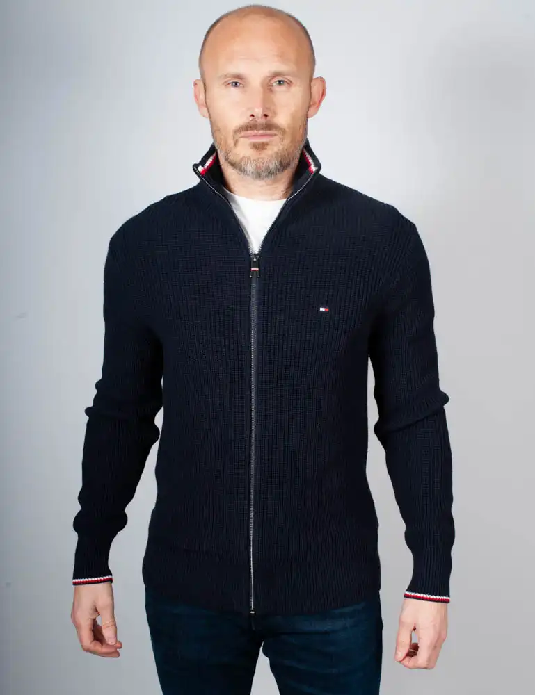 Tommy Hilfiger RWB Rib Knit Zip Through Sweater | Navy