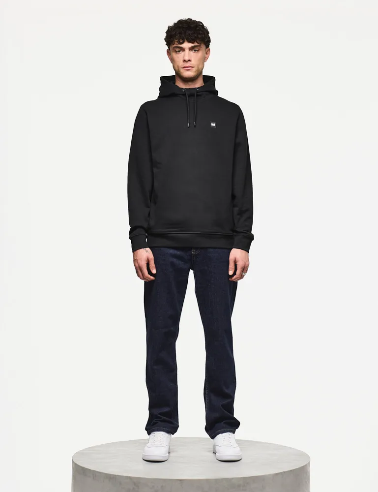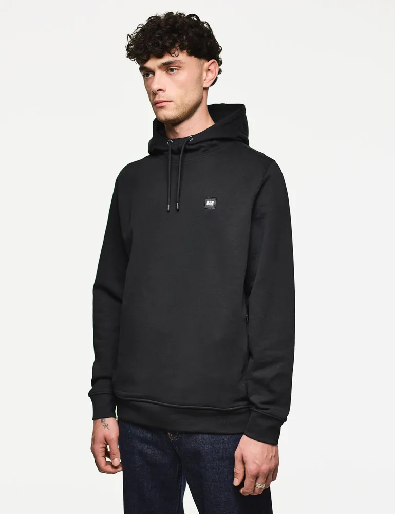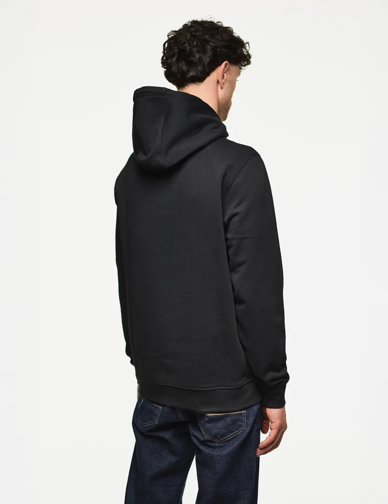 This everyday hooded sweater is made from soft brushback fleece cotton, providing a cosy lining to this laid-back item. It features a three-piece fixed hood, concealed zip pockets within a central kangaroo pocket, and the brand's badge logo embroidered on the chest.