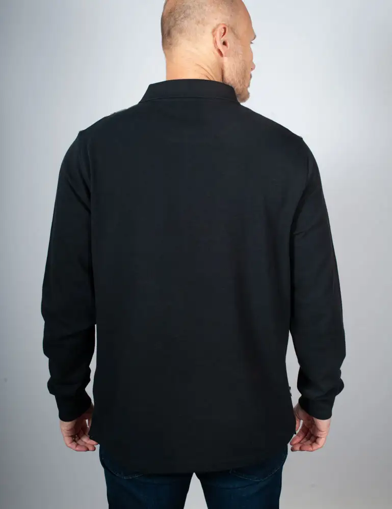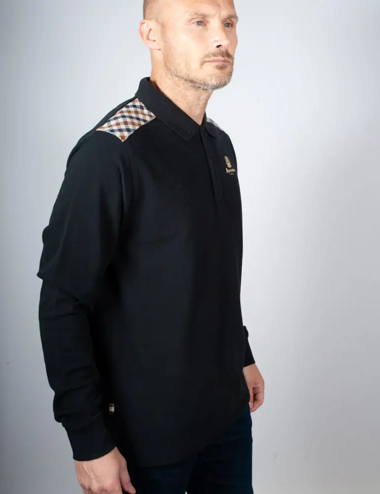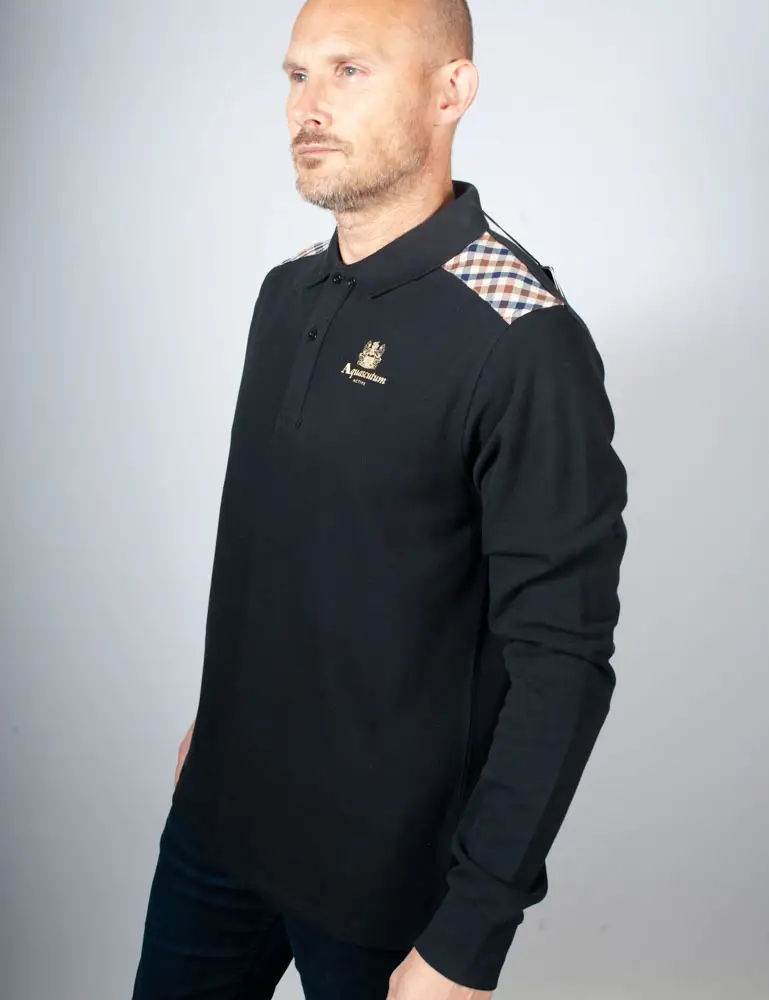 Aquascutum Active Check Shoulder Stripes L/S Polo / Black