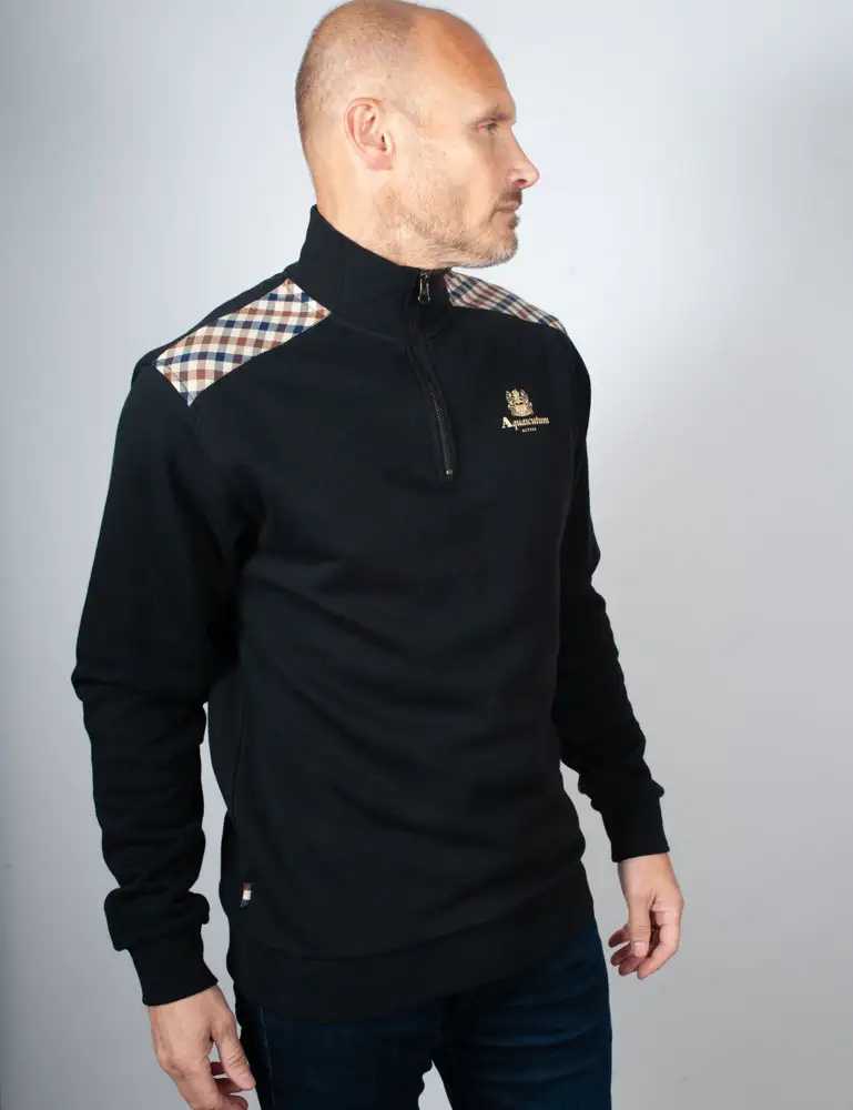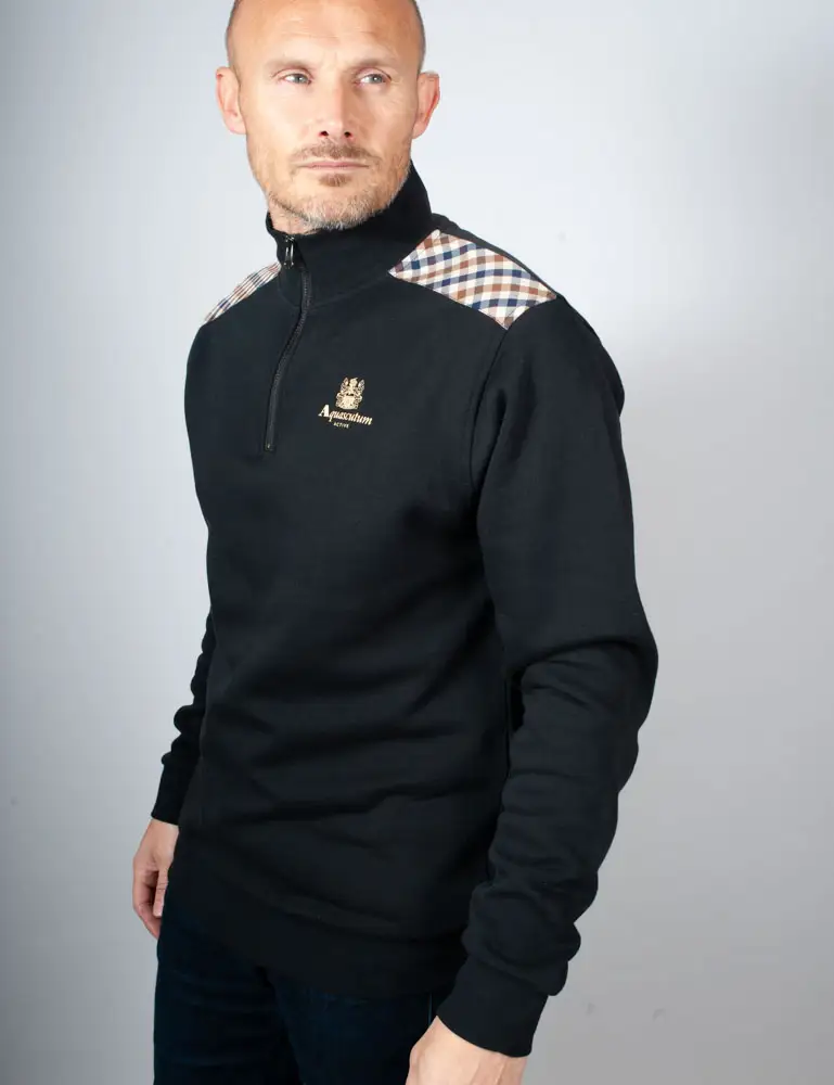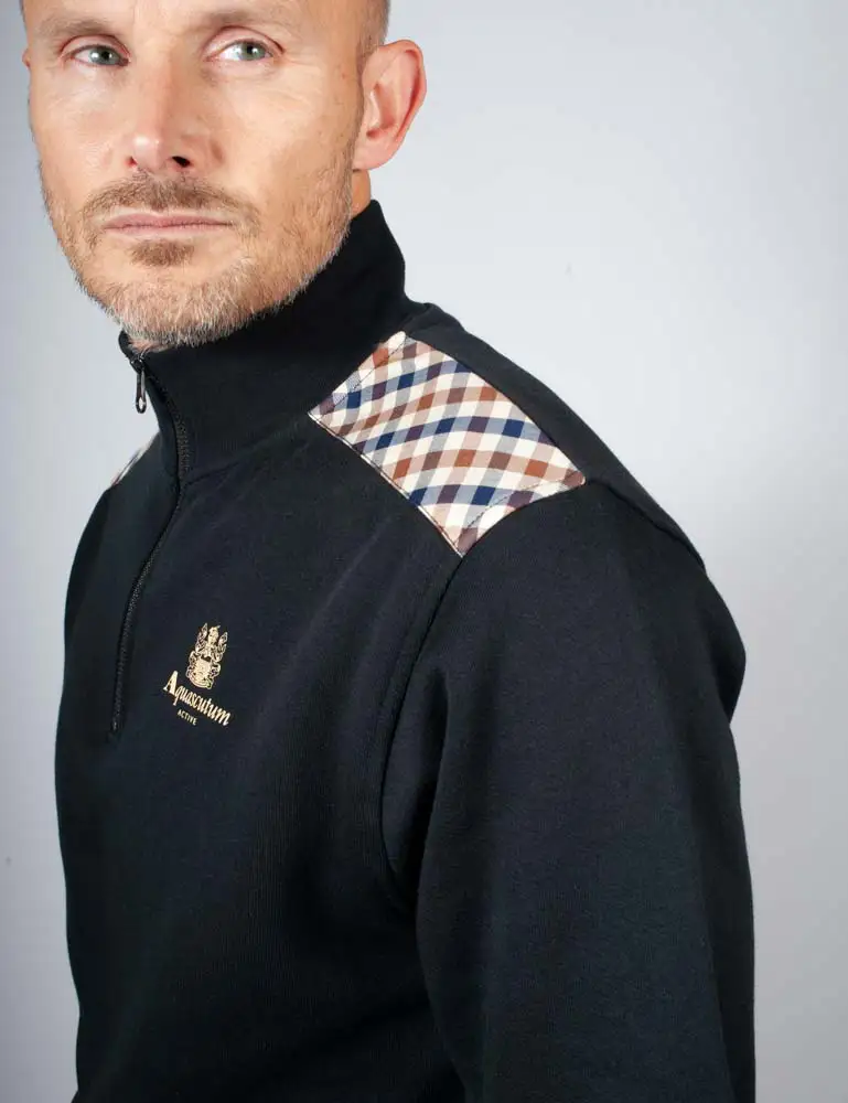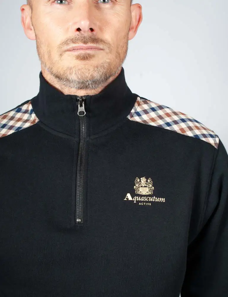 Aquascutum Active Club Check Shoulder 1/4 Zip Sweatshirt / Black