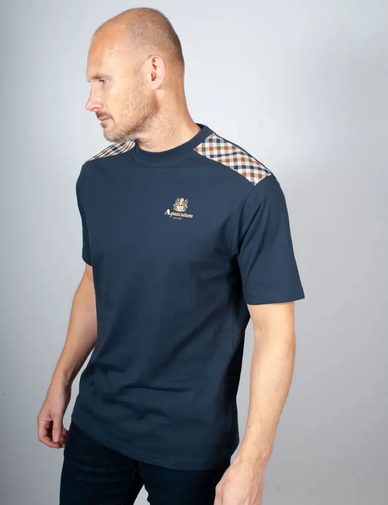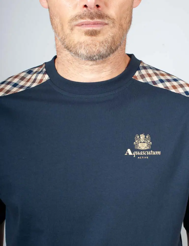 Aquascutum Active Club Check Shoulder T-Shirt / Navy