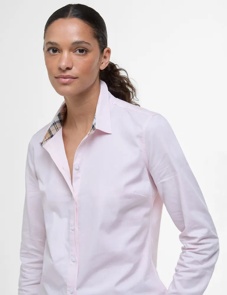 A classic smart staple from the Women's Barbour collection.  Crafted in rich cotton and finished in a regular fit. The Derwent shirt has a pointed collar, full button placket and curved hem.