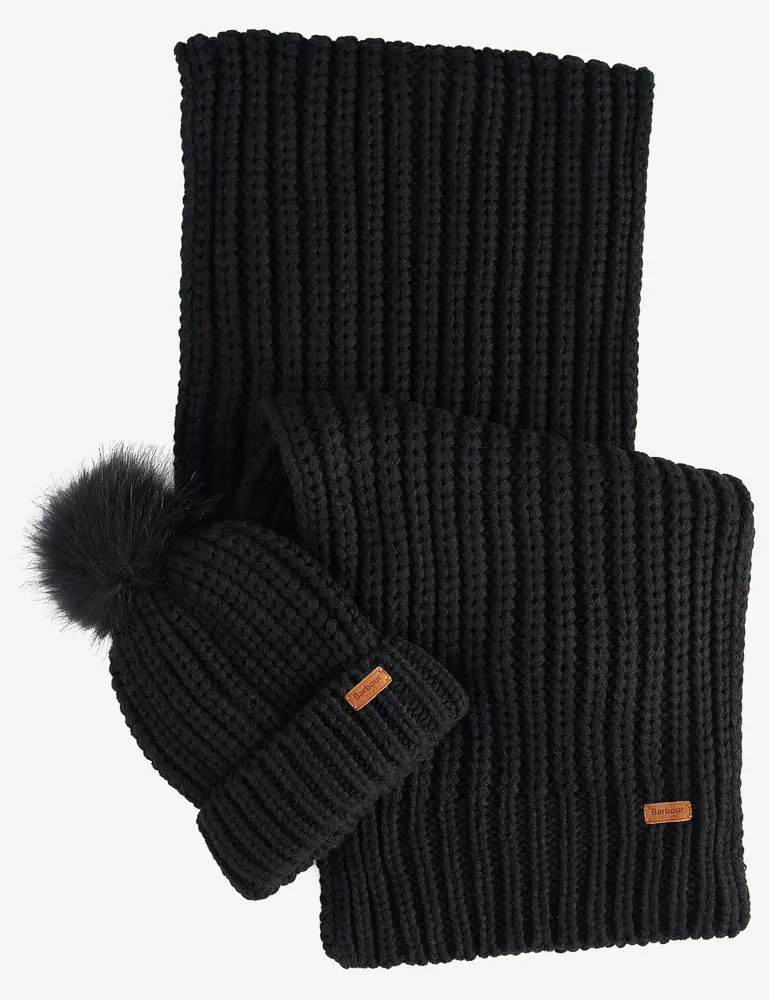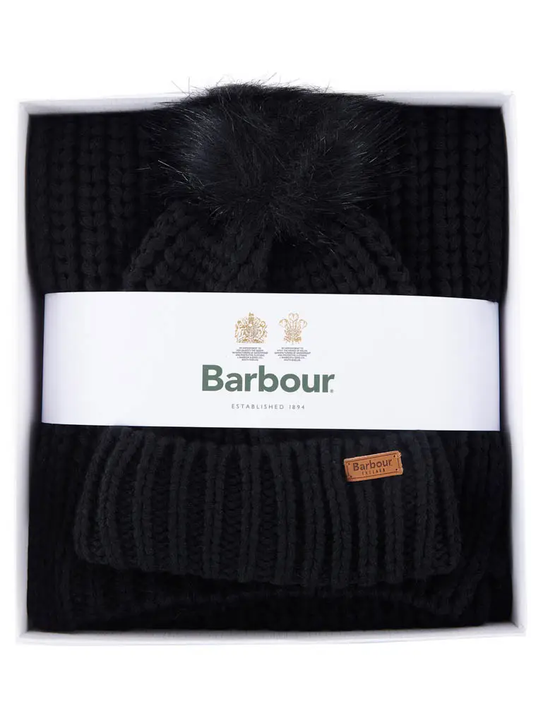 Barbour Womens Saltburn Hat & Scarf Gift Set | Black