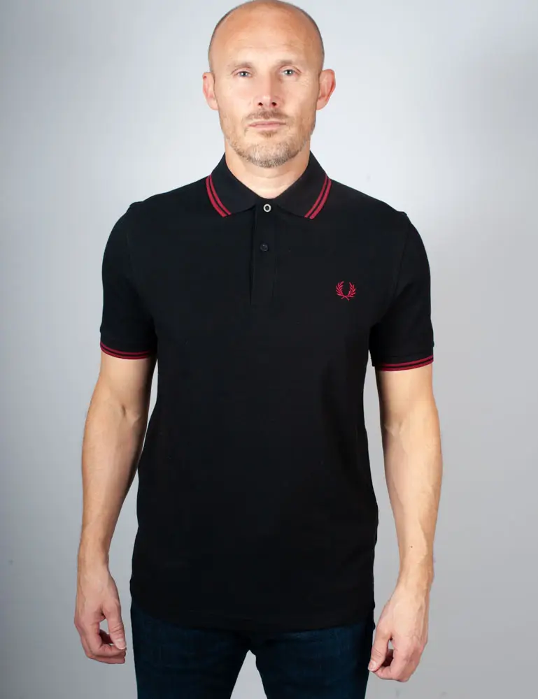 Fred Perry Twin Tipped Polo Shirt | Black / Burnt Red