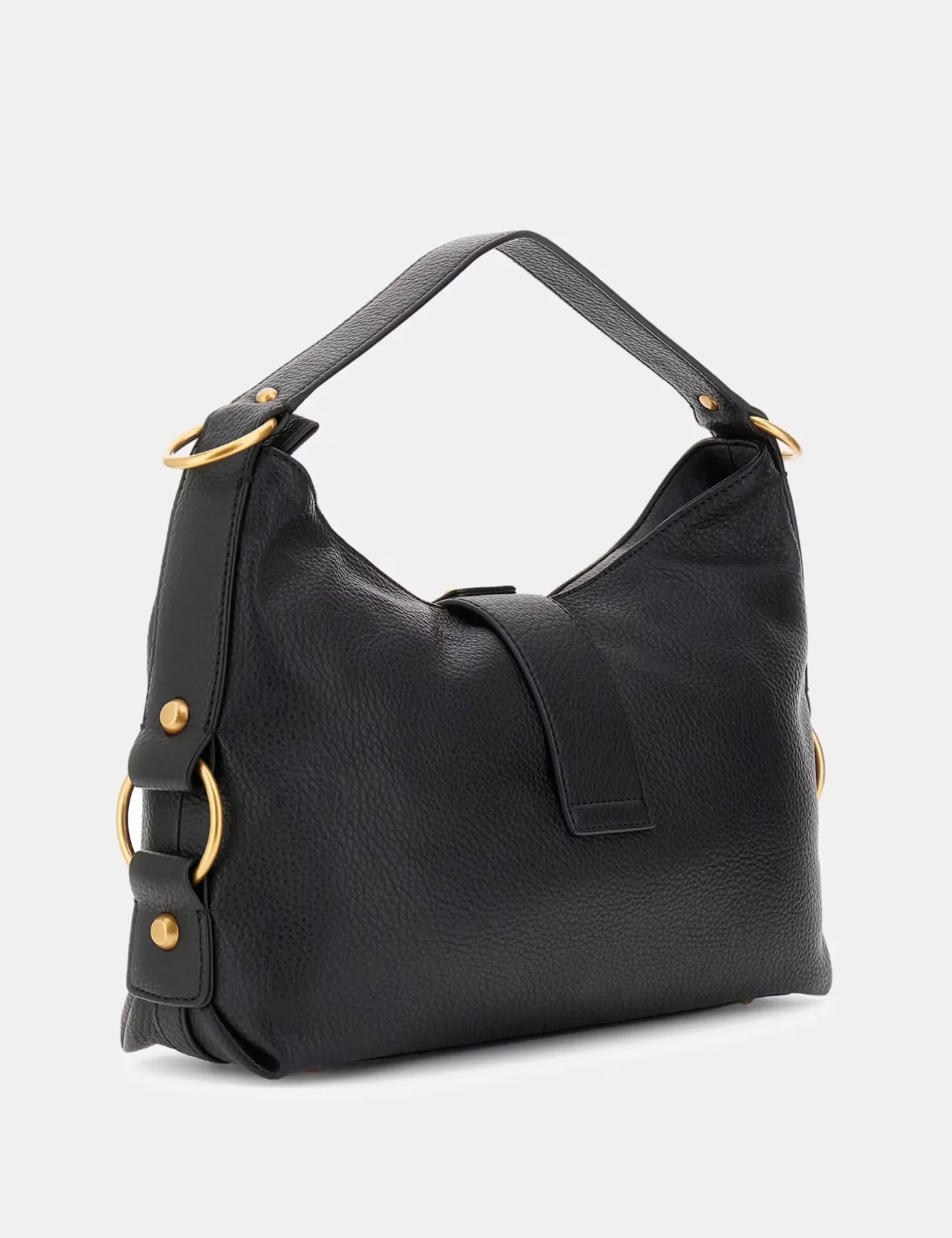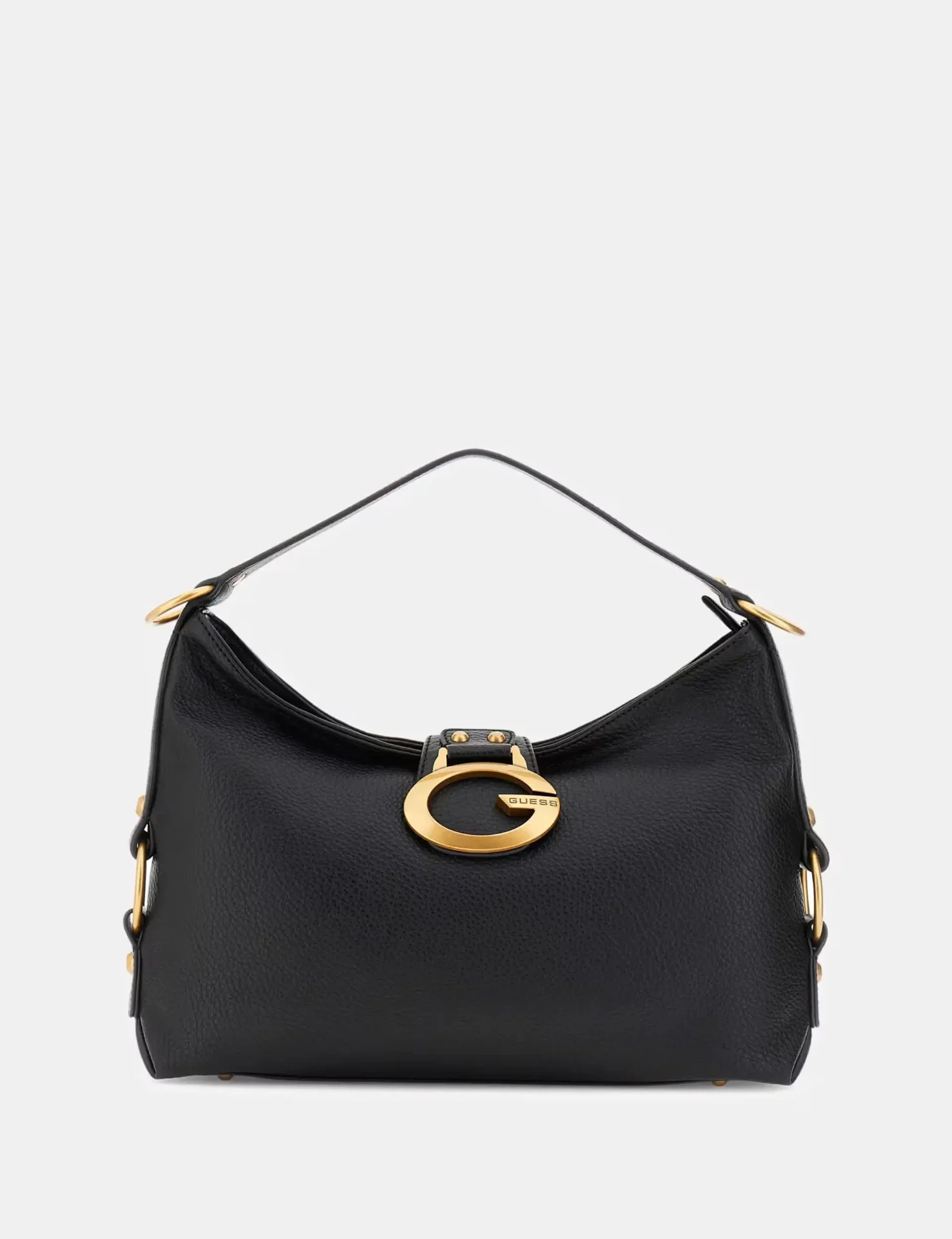 An elegant and minimal shoulder bag from Guess. Crafted in supple faux leather, The Camden shoulder bag has a zip top closure and flap-over strap with a large metal 'G' branding badge.
