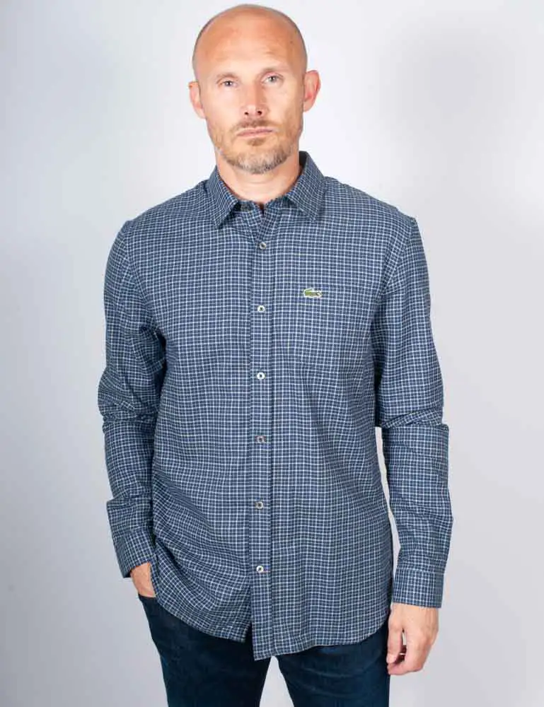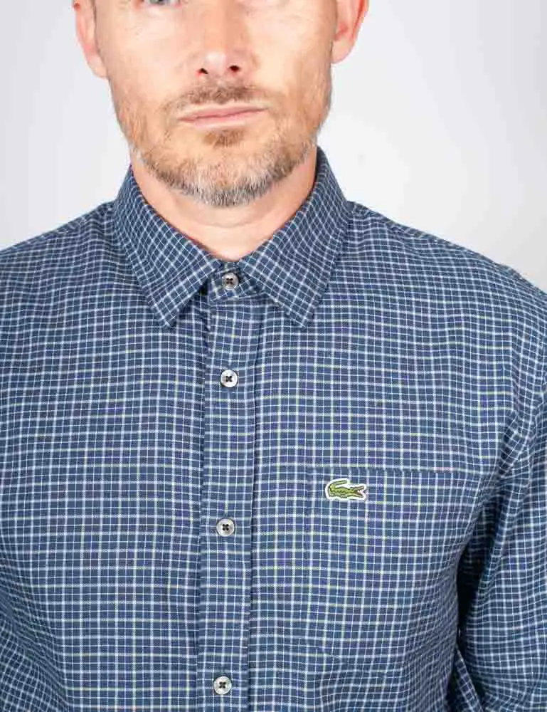 Lacoste Regular Fit Plaid Flannel Shirt | Navy Blue/White