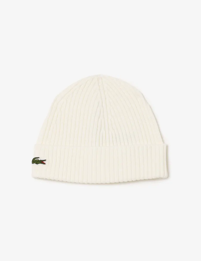 Picture of Lacoste Rib Knit Wool Beanie | Winter White