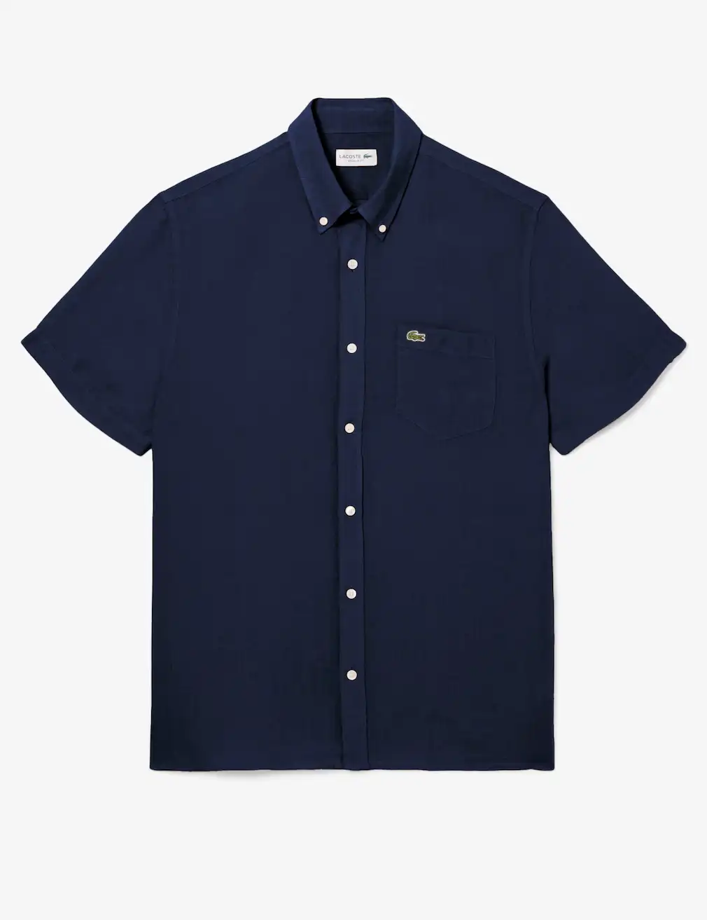 This Lacoste short-sleeved shirt is a refined warm-weather essential crafted from breathable French-grown linen. Naturally heat-regulating and lightweight, it offers exceptional comfort in a regular straight fit. Designed with a chest patch pocket and genuine mother-of-pearl buttons, it’s finished with the iconic embroidered Lacoste crocodile for a signature touch.