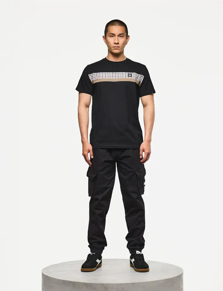 Weekend Offender Cooder Check Panel T-shirt | Black