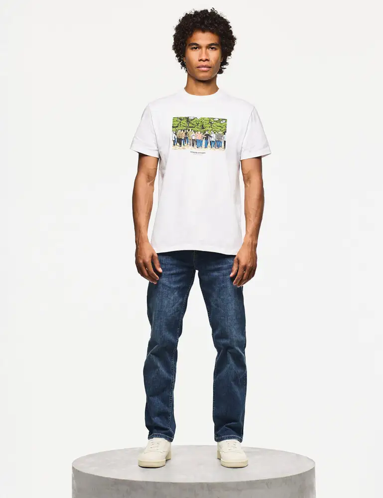 Made from 100% cotton, this crew neck T-Shirt has a printed graphic logo showcasing a famous fight scene from the big screen, redefined with the characters wearing Weekend Offender clothing.