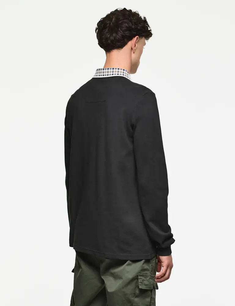 The Lindley Polo is the perfect mid-layer combining both comfort and style, this long sleeve polo will assure you will be looking good and in the cooler months. The polo is crafted from 100% cotton with a twisted yarn construction and features a stylish check Jaquard collar.