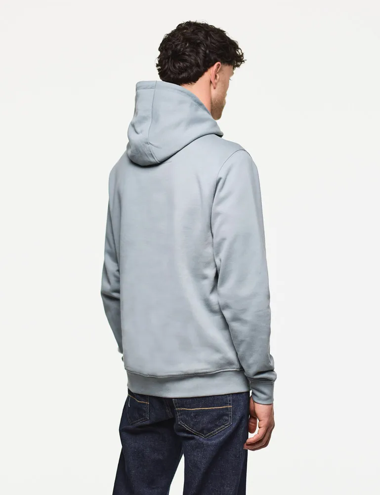 This everyday hooded sweater is made from soft brushback fleece cotton, providing a cosy lining to this laid-back item. It features a three-piece fixed hood, concealed zip pockets within a central kangaroo pocket, and the brand's badge logo embroidered on the chest.